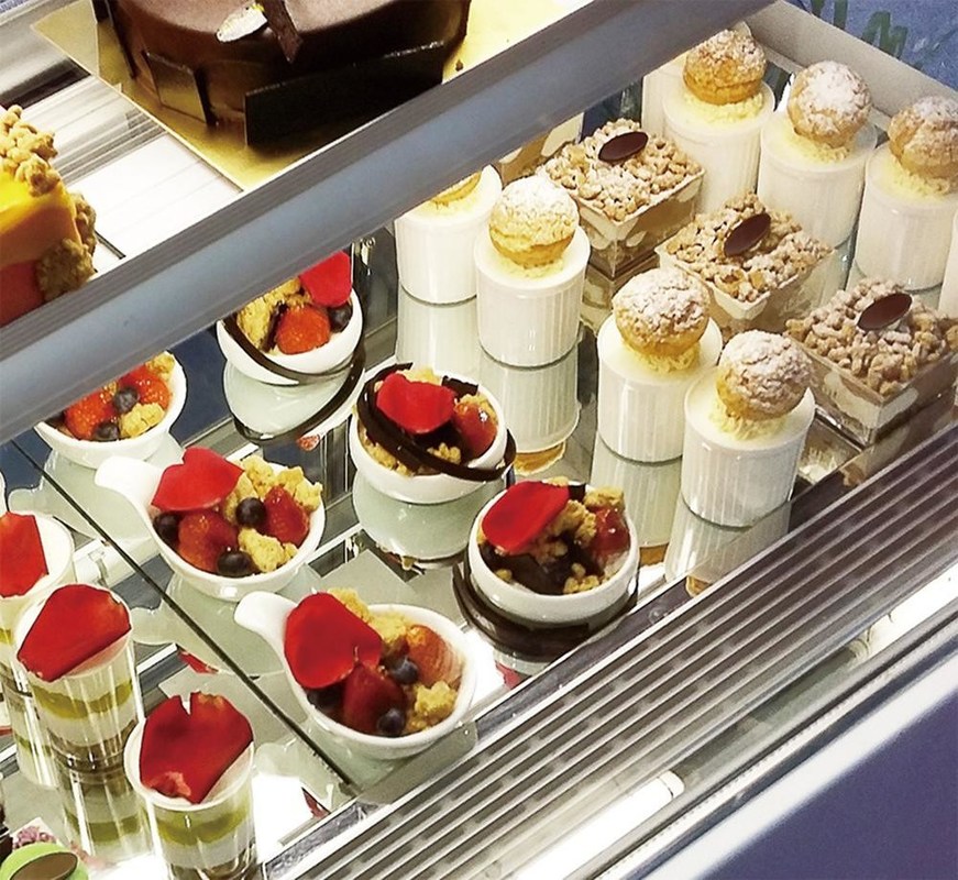 Mostra mais fria do refrigerador da exposição do bolo